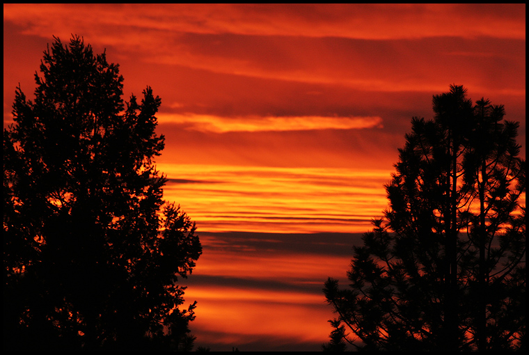 Nice photo; always looking for new things to do with sunsets. With the fog (?) on the ground, it almost looks like this was taken above the clouds.